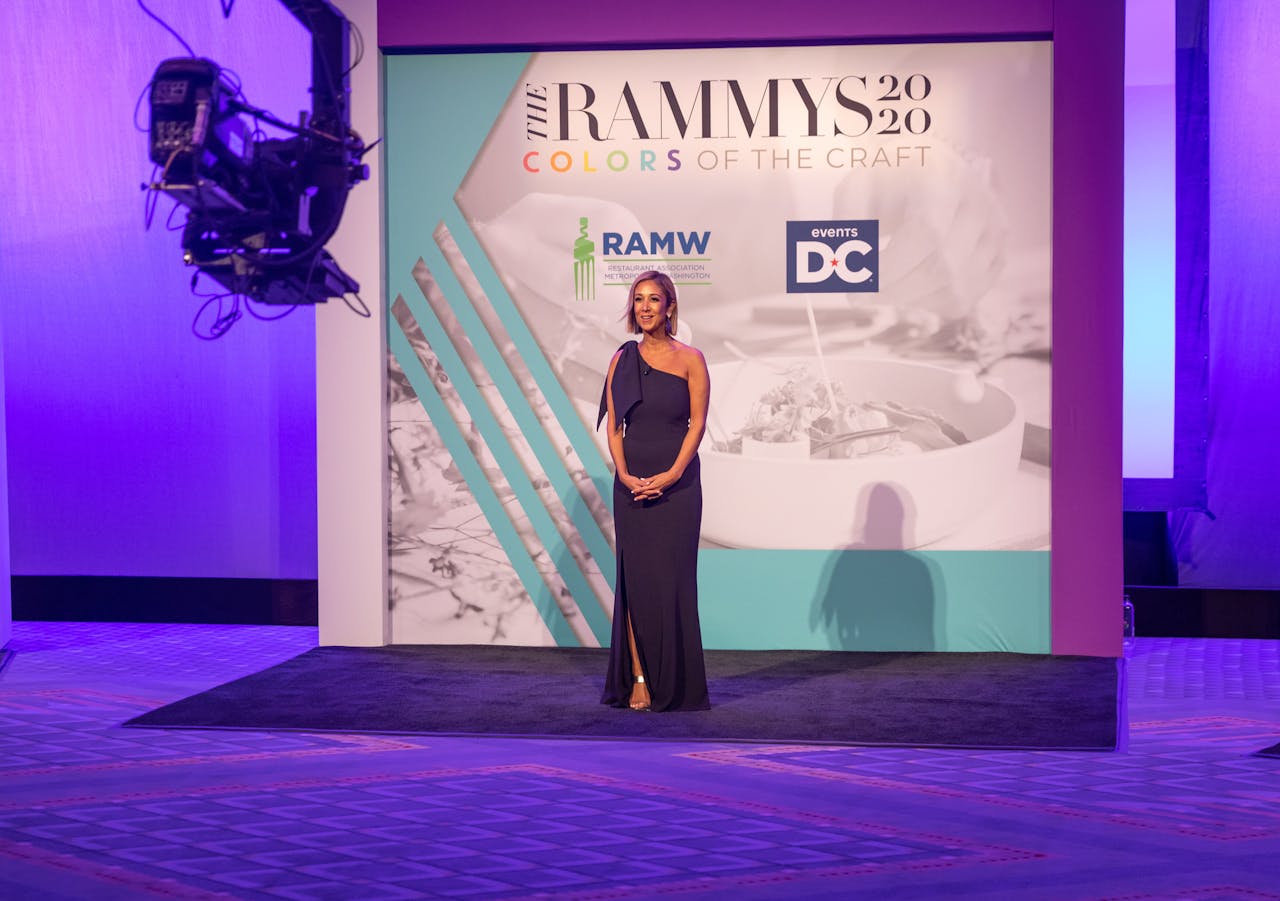 One way to space people apart without it looking awkward? Tricks of the camera, says Roger Whyte, principal at RJ Whyte Event Production, who produced the RAMMY Awards Gala in Washington, D.C. on Sept. 20. The annual awards, which honor the city's restaurant and food service community, were filmed at the Walter E. Washington Convention Center and broadcast to a virtual audience.